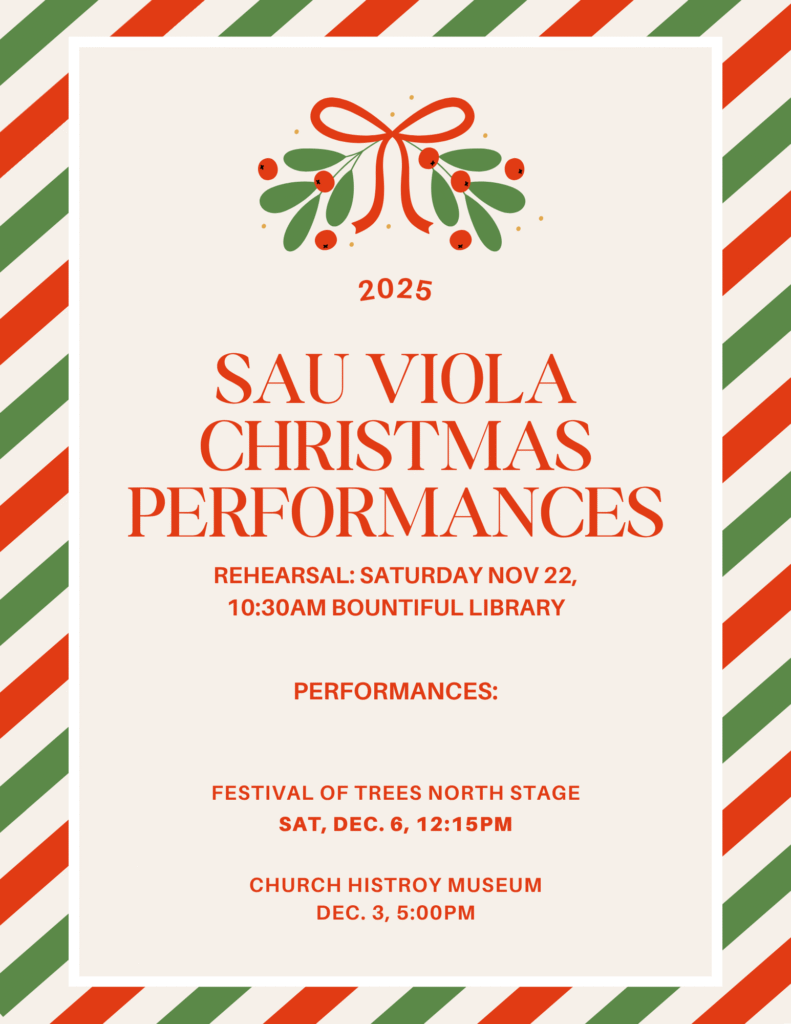 Rehearsal is Saturday, November 22 at 10:30 am at the Bountiful Branch Library auditorium.